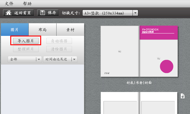导入图片,开始我们的第一本画册之旅,如下图: